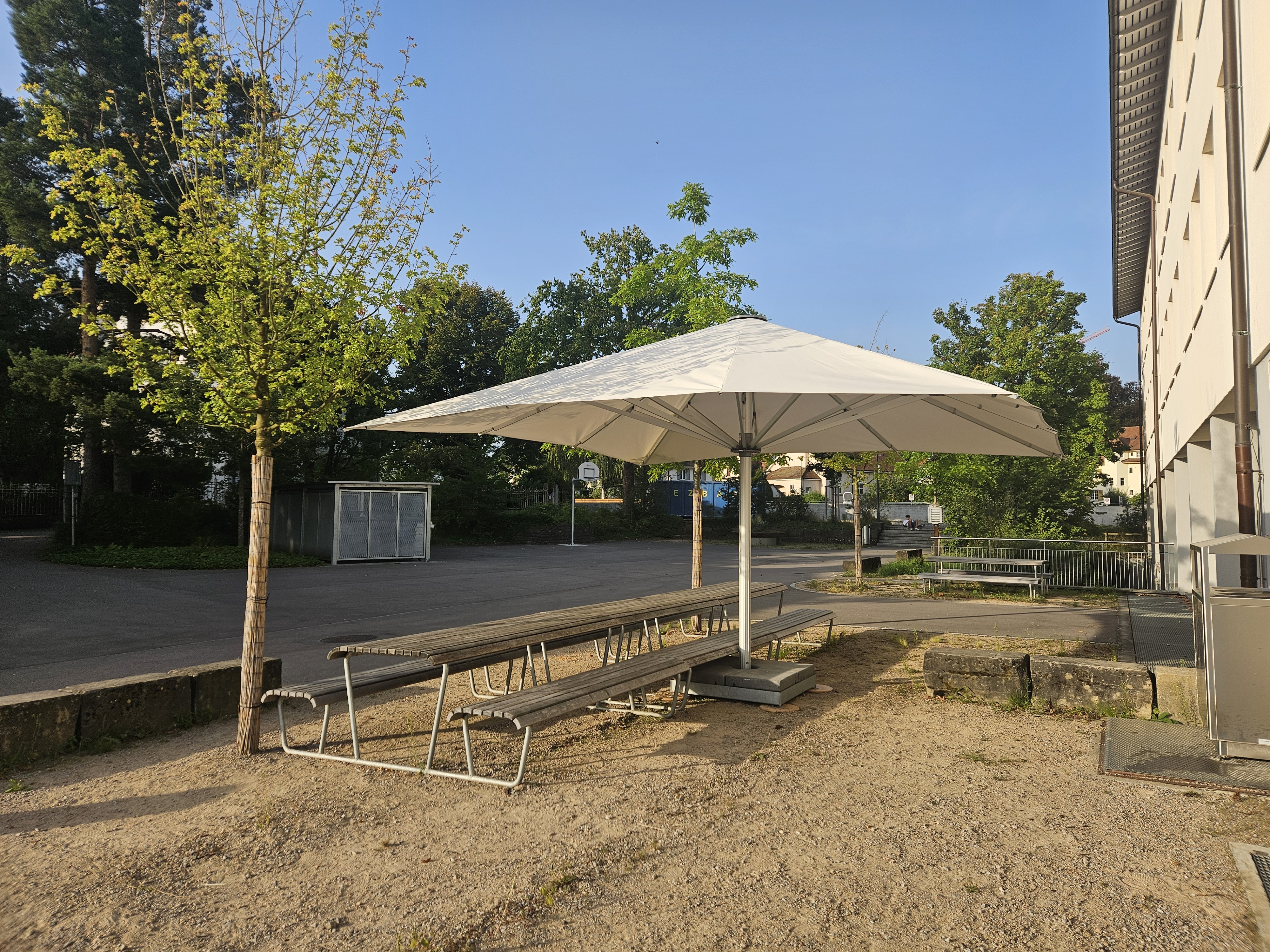 Neuer Sonnenschirm auf dem Pausenhof Burg